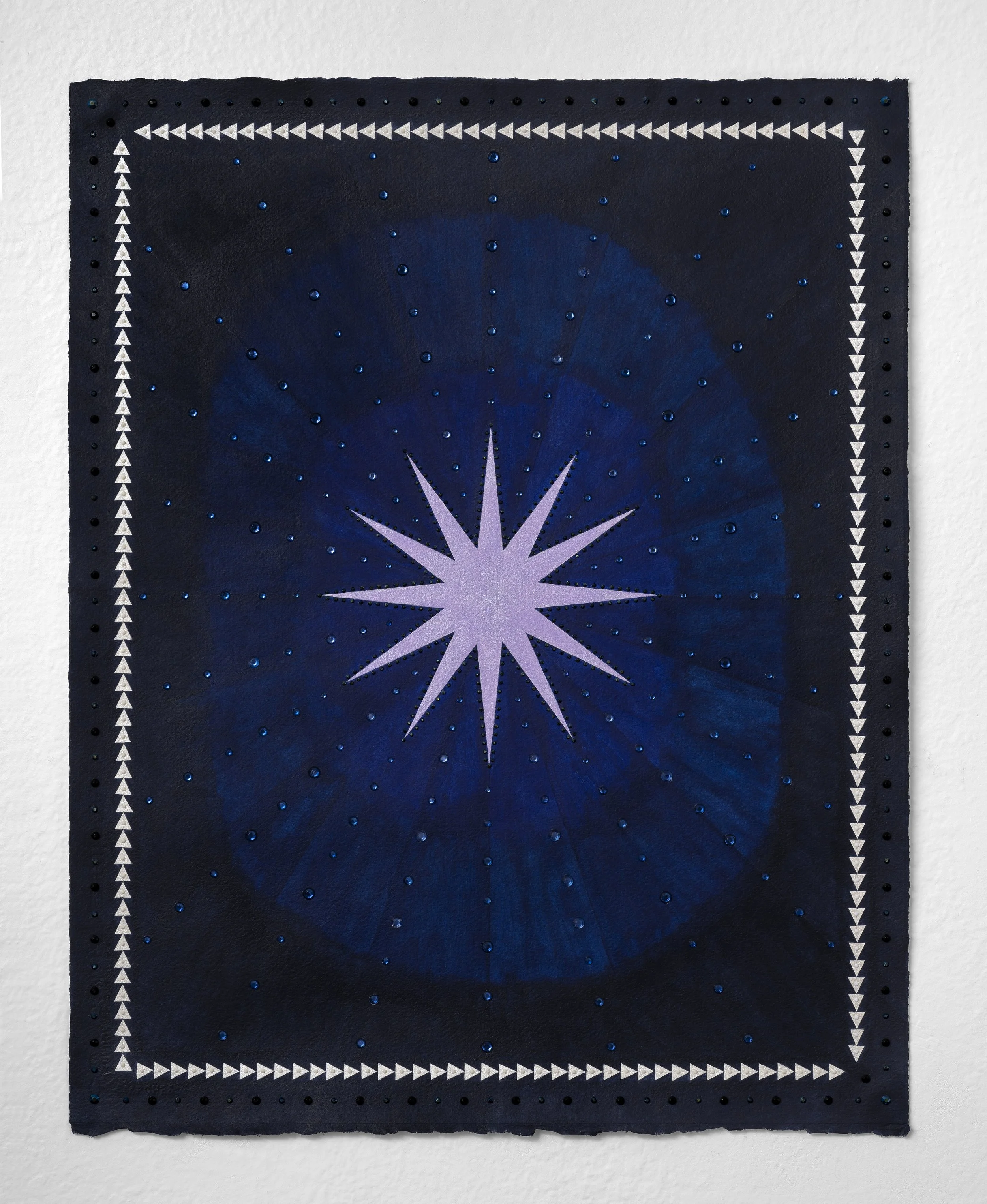 “North Star” acrylic, gouache and rhinestones on paper. 20in x 16in. 2025