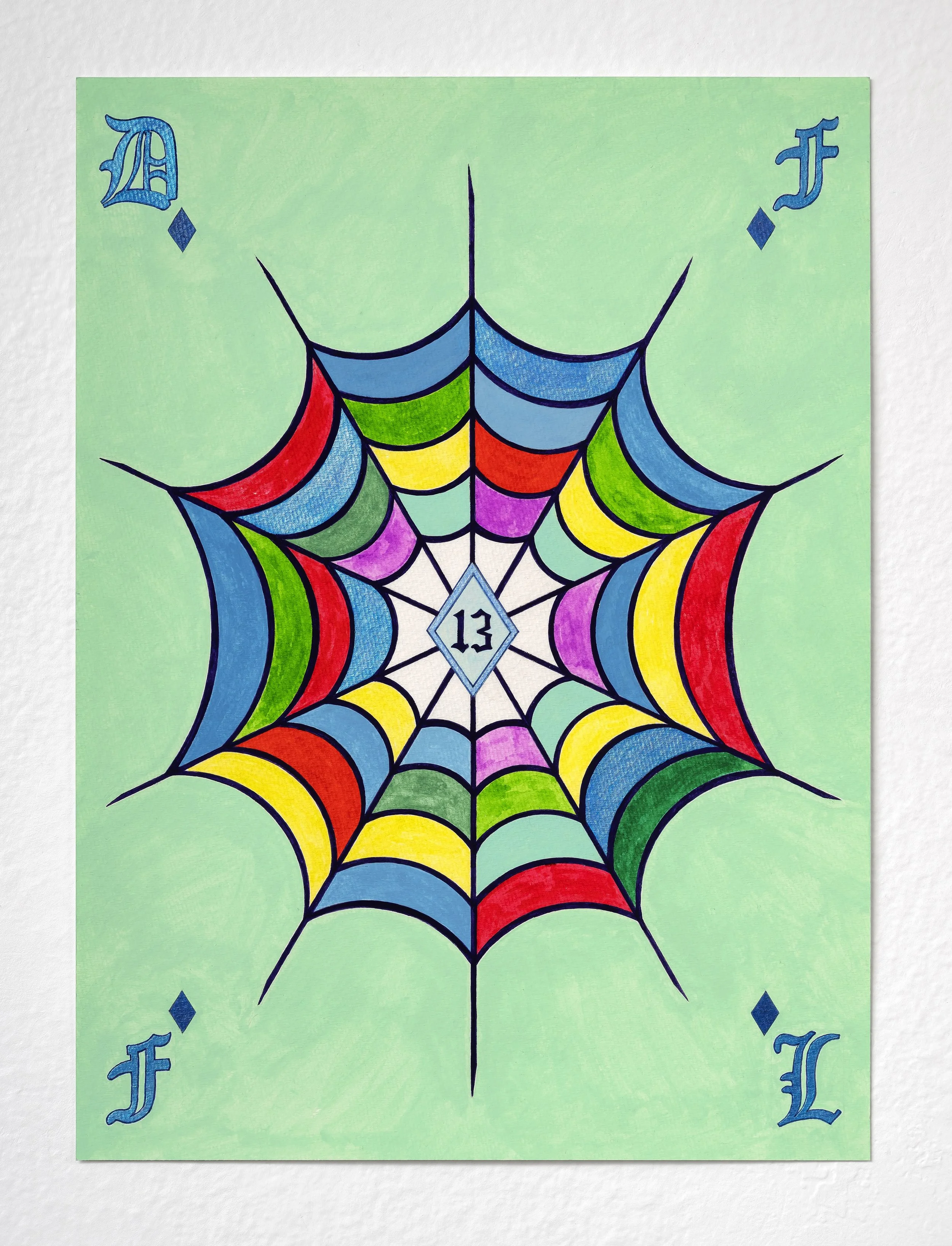 “#13” acrylic, gouache, and magic marker on paper. 15in x 11in. 2025