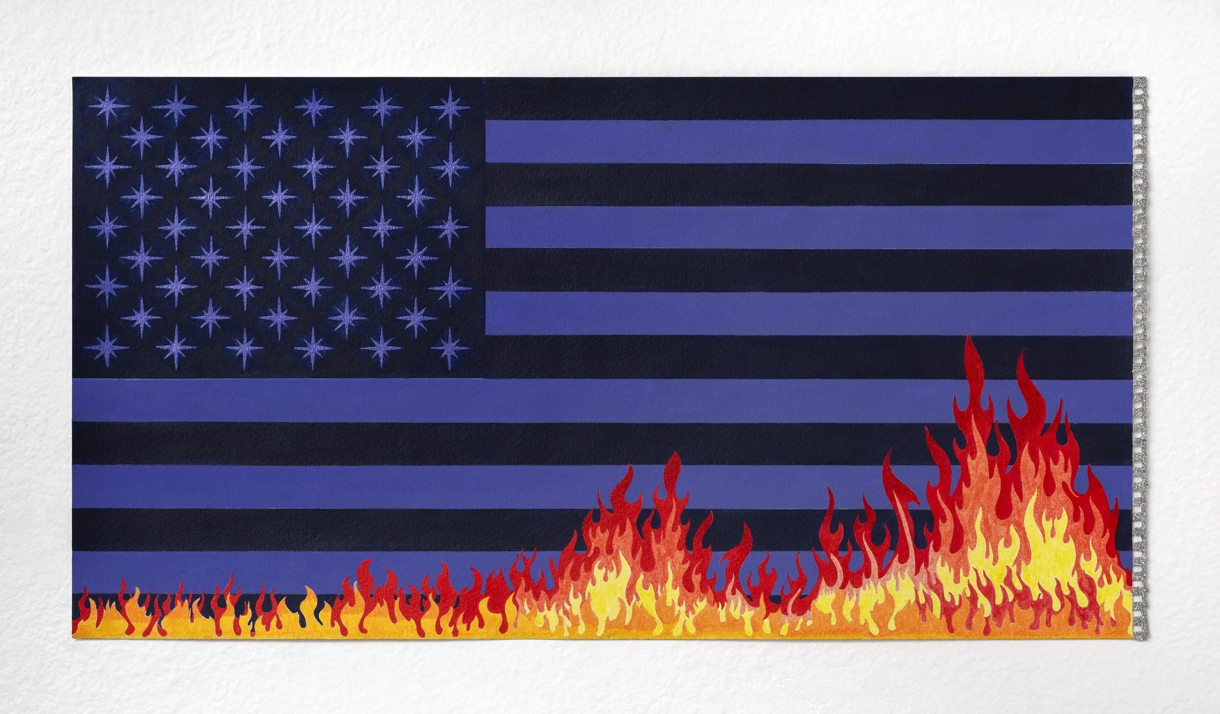 “American Midnight” acrylic, magic marker and glitter on paper. 13in x 24in. 2024